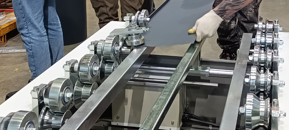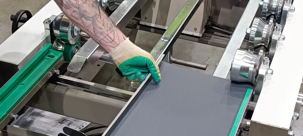 • Регулировка станка под различную ширину штрипсы осуществляется путём вращения штурвала, где при этом подвижная каретка перемещается под требуемую ширину ленты.